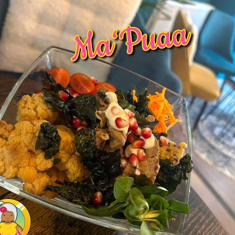 Reis, Feldsalat, hausgemachter Apfel-Möhren-Salat, Tomaten und Gurken geben der Ma`Mauna einen frischen Geschmack, der nach mehr schreit.